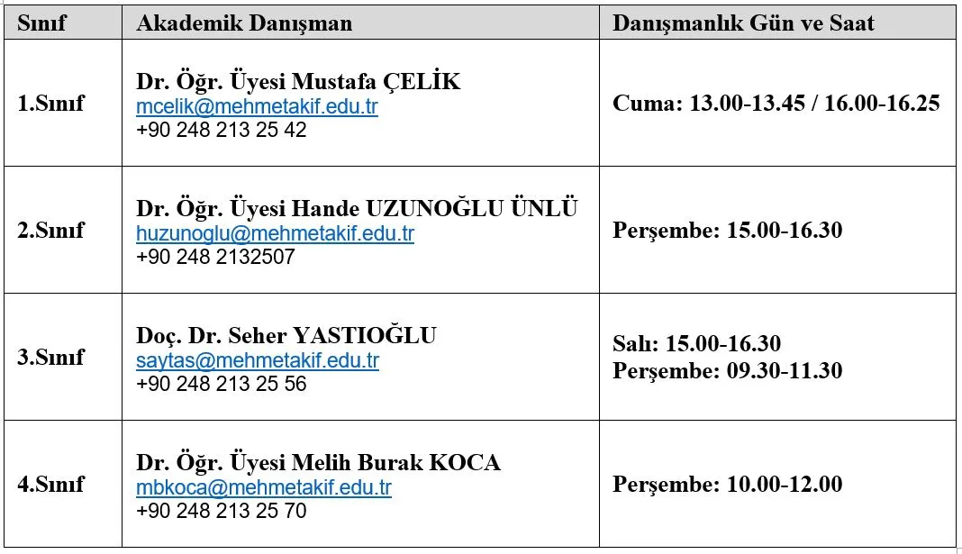 Öğr. Üyesi Ad Soyad:Danışmanlık Gün ve Saat: