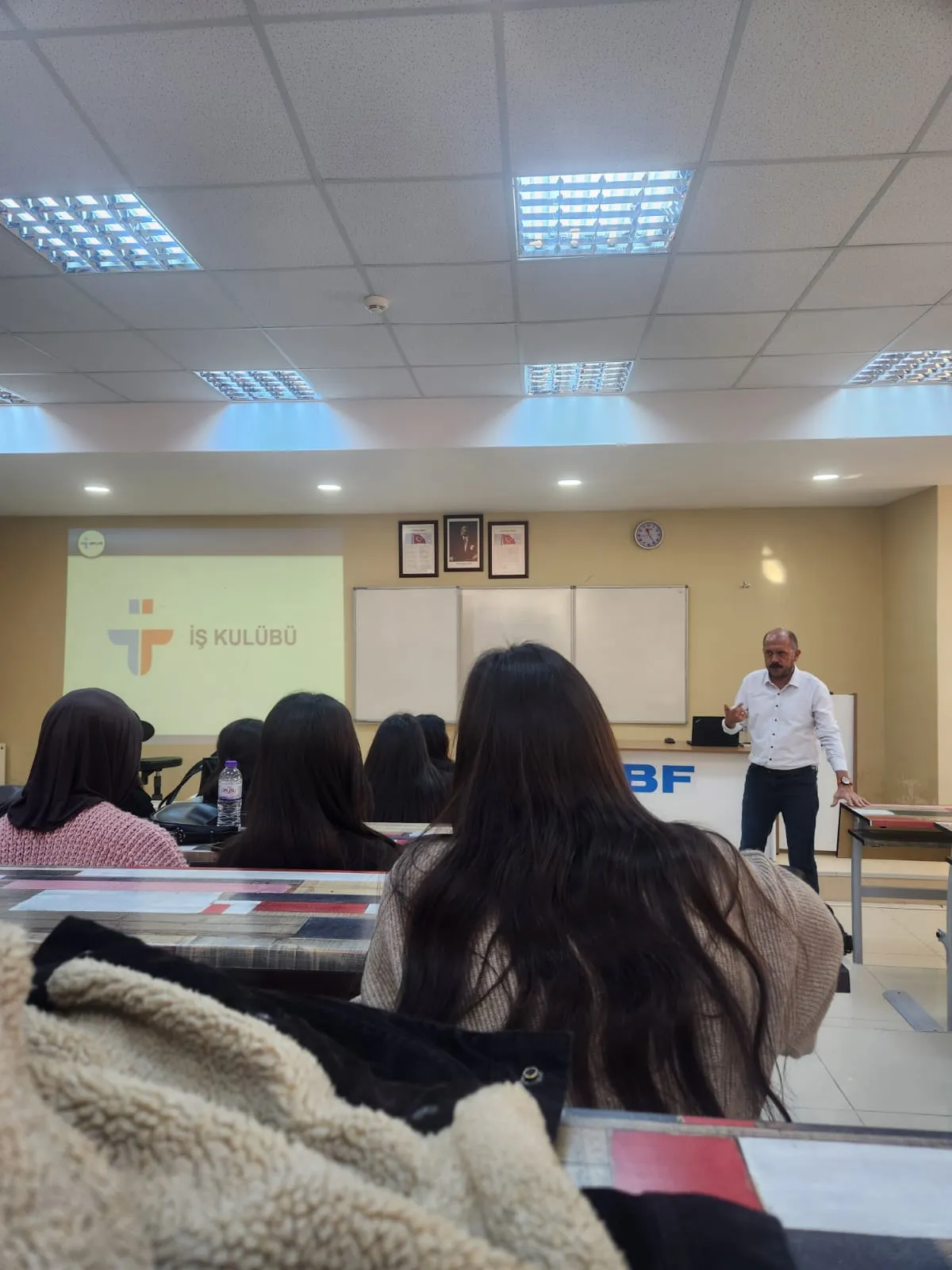 Fakültemiz Maliye ve İktisat Bölümleri tarafından ortaklaşa düzenlenen etkinlikler kapsamında, öğrencilerin kariyer yolculuklarına katkı sağlamak amacıyla “İş Başvuruları ve Mülakatlarda Dikkat Edilmesi Gereken Hususlar” başlıklı bir seminer gerçekleştirildi. Maliye ve İktisat bölümlerinin iş birliğiyle organize edilen bu verimli etkinlikte, İŞKUR İş ve Meslek Danışmanları Sayın Nihan Yıldırım ve Sayın Çağla Yurdasiper konuşmacı olarak yer aldı. Seminerde; iş arama süreçlerinin profesyonelce yönetilmesi, etkili ve dikkat çekici CV hazırlama yöntemleri, mülakatlarda başarıyı getiren teknikler ve stratejik kariyer planlama konularında öğrencilere kapsamlı bilgiler aktarıldı. İŞKUR uzmanları, teorik bilgilerin yanı sıra iş dünyasındaki güncel beklentileri ve pratik ipuçlarını da öğrencilerle paylaştı. Fakültemiz Maliye ve İktisat bölümleri öğrencilerinin yoğun ilgi gösterdiği etkinlik, soru-cevap bölümüyle sona erdi. Öğrencilerimize iş yaşamına dair önemli yetkinlikler kazandıran bu ortak organizasyona katkılarından dolayı Sayın Yıldırım ve Sayın Yurdasiper’e teşekkür ediyoruz.